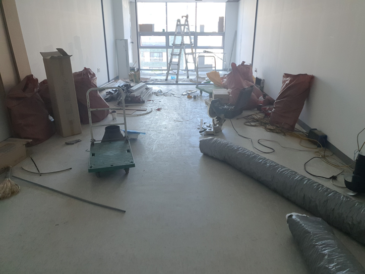 신축건물의 경우 초창기 관리사무소의 업무는 큰 틀로 2가지로 나누어지는데 첫 번째는 시설인수인계와 공용 부분 청소이고 두 번째는 인테리어 공사업체 관리라고 할 수 있다. 인테리어 업체는 세내 내부를 업무 특성에 맞게 변경을 하는데 지식산업센터의 경우 90% 정도가 중간창을 제거하고 입구에 유리문과 파샤드를 설치하는 것이 대부분이다.