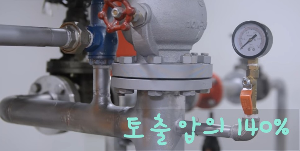 체절운전은 펌프의 토출 측의 관로가 닫히거나 유량의 통과가 방해될 정도로 제어밸브 등을 차단한 상태에서 운전하는 것인데요. 쉽게 말해서 체절압력 미만에서 릴리프밸브가 개방되어 물이 방출되는지 확인하는 시험입니다.