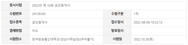 위에서처럼 그래도 회사다니며 틈틈히 공부하여 33회 공인중개사 1차시험을 접수하고 성남에 있는 한국방송통신대학교에서 시험을 보았습니다.