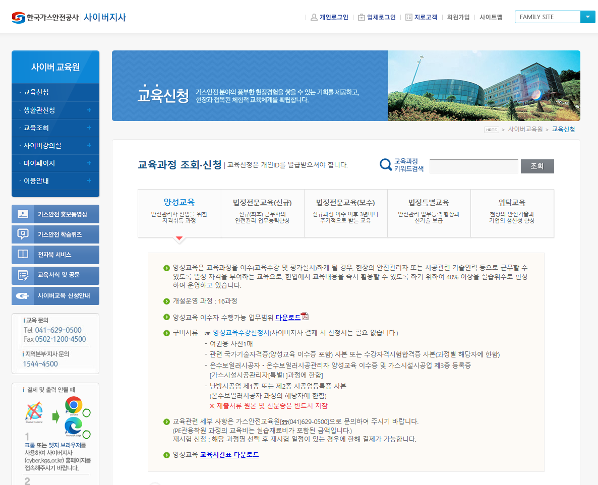 가스안전관리자 교육 신청 방법