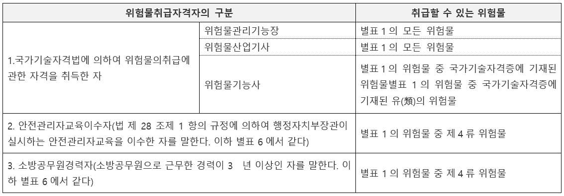 위험물 안전관리자의 자격 요건