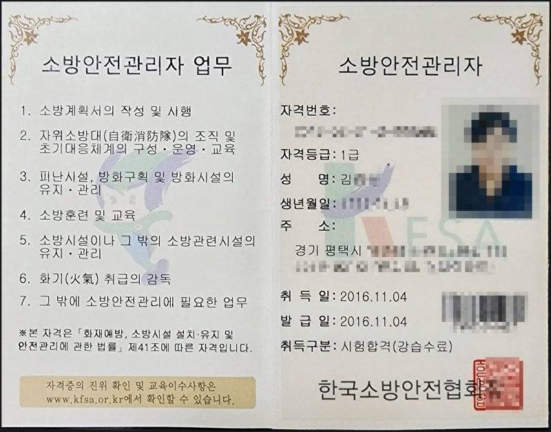 소방안전관리자 1급은 화재 예방 및 안전 관리를 전문으로 하는 자격증입니다. 이들은 소방 시설의 점검, 화재 예방 교육, 소방 계획 수립 등의 업무를 수행합니다. 소방안전관리자는 화재로부터 인명과 재산을 보호하는 중요한 역할을 하며, 특히 대형 건물이나 공공시설에서 필수적인 자격증입니다.