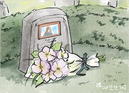 그리고 '엄마' 하면서 꽃을 내려놓았습니다.