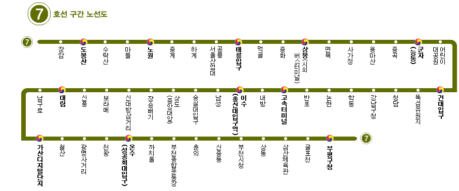 7호선 주요 노선 및 역