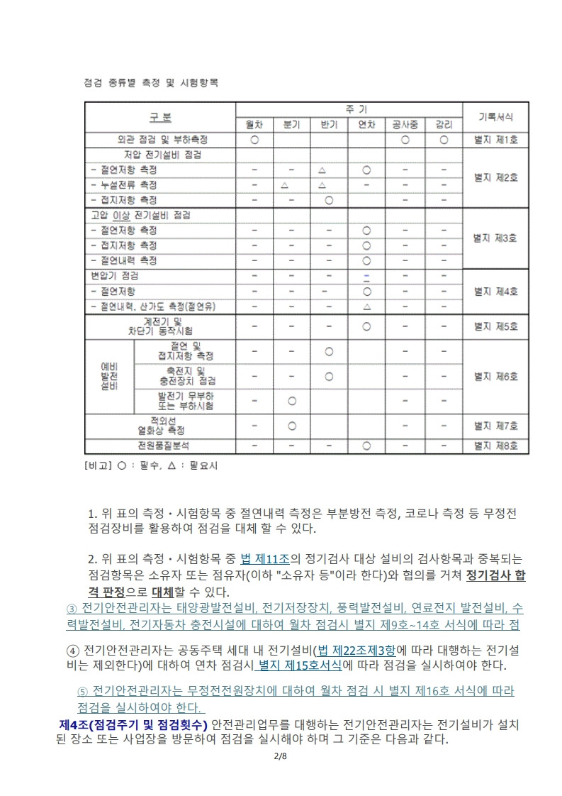 - 전기설비 점검 기록