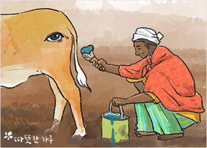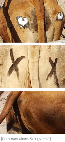 소 양쪽 엉덩이에 눈 그림을 그려놓고