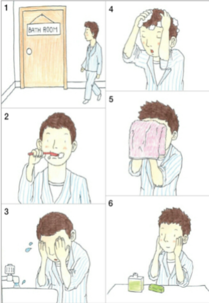 자기 자신의 세면하는 과정을 일상속도의 영어 흐름으로 말해보세요.!