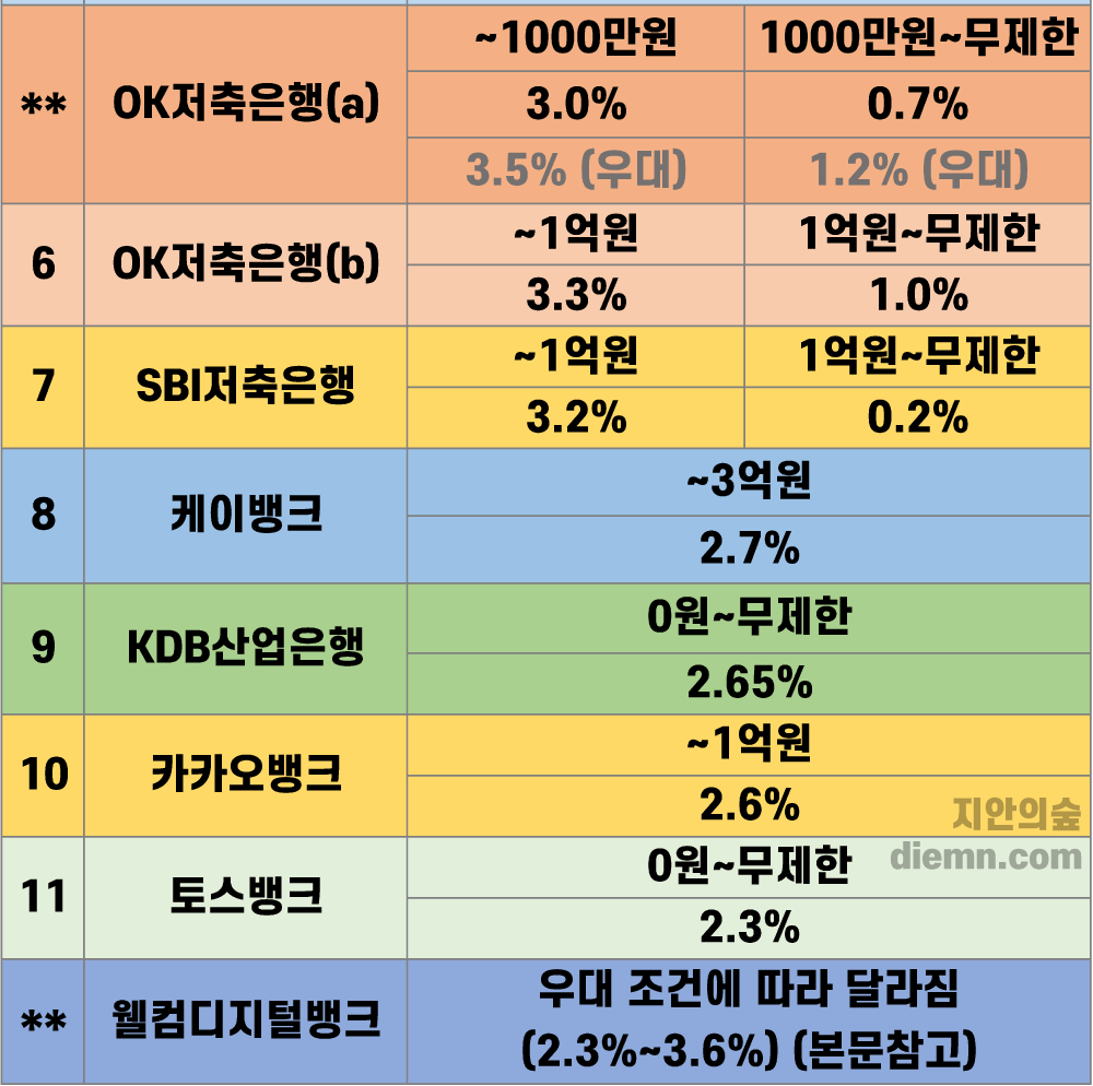 - 이자율 : 각 저축은행마다 이자율이 다르므로, 비교 후 선택하는 것이 좋습니다.