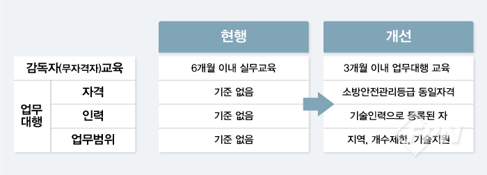 관계인 점검 대상물 위주의 불시단속 시행과 배치신고 위반 등에 대한 처벌도 강화한다.
