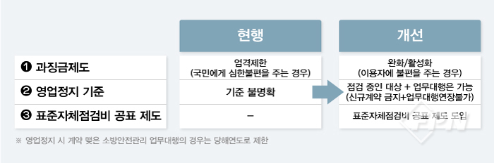 과징금 부과 조건과 영업정지 기준을 개선하고 점검 대가에 대한 기준도 마련한다.