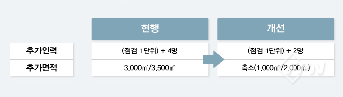 이에 점검 1 단위당 추가로 투입할 수 있는 보조인력을 2명으로 축소하고 추가 점검 가능 면적의 경우 종합정밀점검은 1천㎡로, 작동기능점검은 2천㎡로 개선할 계획이다.
