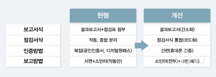점검표 등 보고서식 간소화ㆍ관리시스템 고도화