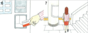 go, check, walk, put, push, pick, wakl, subway, station, map, ticket, machine, coin, slot, button, plaform