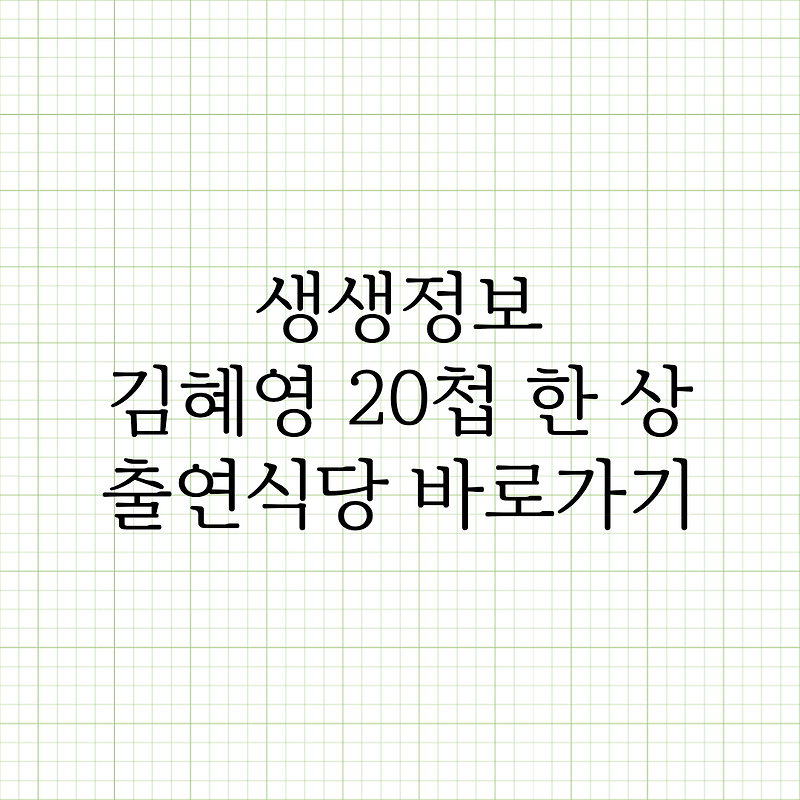 안녕하세요! 오늘은 방송인 김혜영 씨가 추천하는 건강가득 20첩 한 상에 대해 소개해 드리겠습니다. 최근 KBS2의 프로그램 '2TV 생생정보'에서 김혜영 씨가 추천한 맛집이 화제가 되고 있는데요, 그 이야기를 함께 나눠보겠습니다.