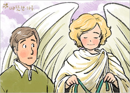 천사가 미소를 지으며 남자에게 말했습니다.