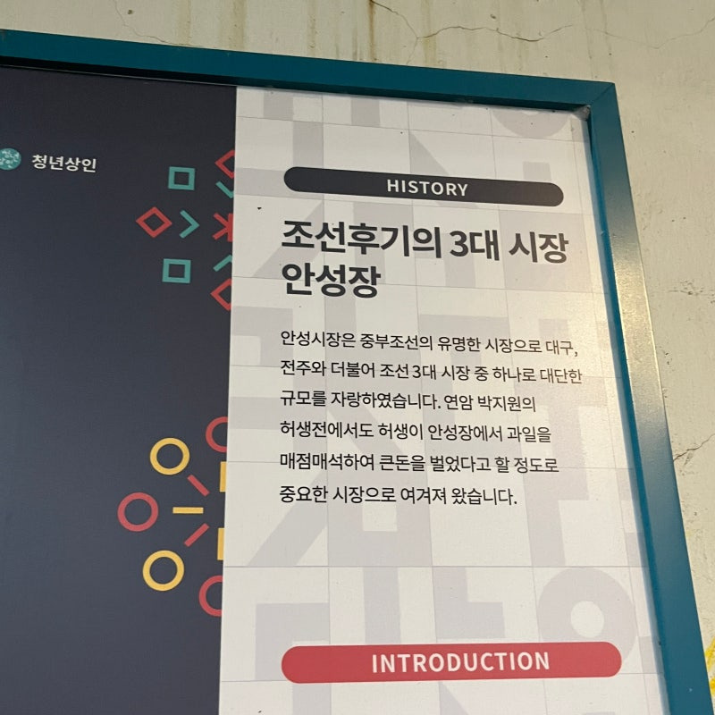 안성맞춤시장은 조선시대부터 이어져 온 전통시장이며, 그 규모와 중요성은 대전과 전주와도 연결되어 있습니다. 이 시장은 지역 경제와 문화에 큰 기여를 해왔으며, 특히 박지원과 같은 역사적 인물과도 관련이 깊습니다. 시장의 역사적 배경을 담은 안내판이 곳곳에 설치되어 있어, 방문객들은 시장의 유래를 쉽게 알 수 있습니다.