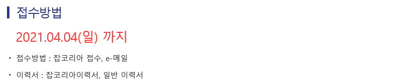경력 : 경력7년이상, 학력 : 학력무관, 급여 : 300~305만원, 마감일 : 2021.04.04