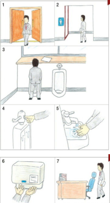 return, dry, wash, flush, do, go, walk, desk, toilet, business, restroom, meeting