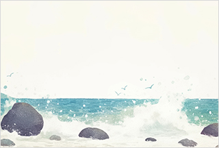 비 내리는 날 바위에 부딪치는 파도 소리,