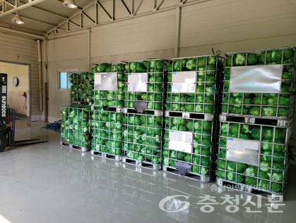 에서는 신선한 배추가 진열되어 있는 모습을 볼 수 있습니다.