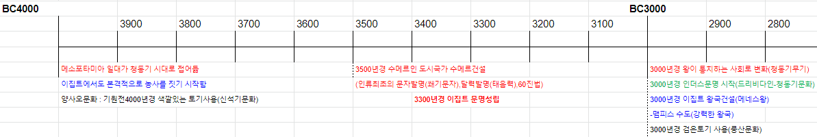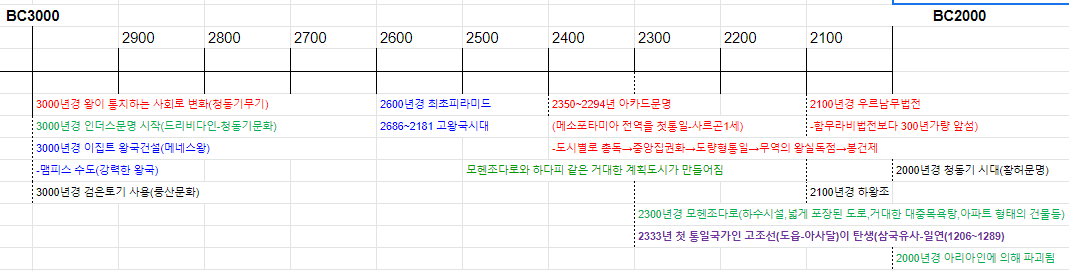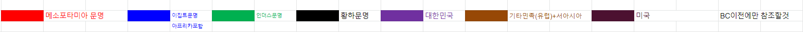 아래의 색상표시는 태초의 역사를 문명별로 구분할 수 있게 하기 위함입니다.