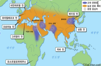 (예를들어 메소포타미아는 현재의 중동지역 및 유럽, 이집트문명은 아프리카 및 유럽민족,인더스문명의 경우 인도, 황하문명은 중국과 아시아여러민족등 큰 뿌리를 쉽게 구분하기위해 사용 하였습니다.)