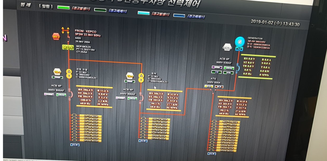 수변전실 인수인계는 특별히 어렵다고 느끼진 않았는데 워낙 큰 수변전실에서 근무하고 전기산업기사 자격증을 공부하며 계통도를 공부한 부분도 있기에 다소 편하게 다가왔다. (아래 두 가지 수변전 계통도를 비교해 보면 쉽게 이해하실 수 있습니다.) 수변전 계통도의 경우 기본적으로 22,000V로 한전으로부터 수전되어 변압기[PT]를 통해 380V로 다운시킨 후 설비용은 380V를 사용하고 [펌프나 급배기 설비] 기타 사무용 시스템과 사무실 콘센트에는 220V로 변환하여 공급된다고 볼 수 있다. [아래 수변전계통도를 보며 건물의 규모에 따른 설비셑팅에 관한 내용을 확인하면 실무에 도움이 될 듯합니다.]