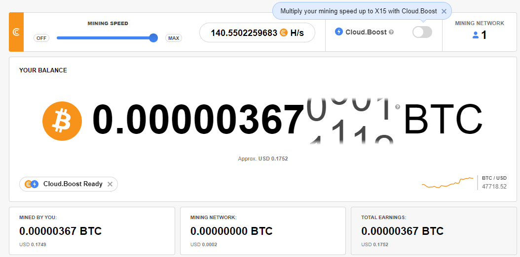 현재 시세로 따지면 약 0.1762 달러입니다. 완전 무료로 하는 것치곤 손해 볼 건 없는 것 같습니다! 저는 회사PC 1대와 개인휴대폰으로 진행하였고 일반pc보다는 휴대폰이 그래픽이 좋아서인지 휴대폰이 성능이 훨씬 좋았습니다.