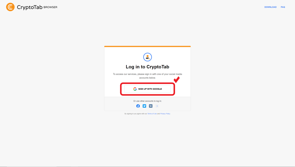 3. 홈 화면 우측 위 CryptoTab에서 구글 로그인