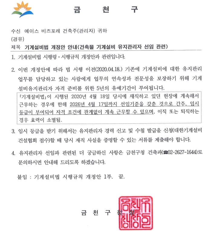 기계설비법관련 실제 진행관련 안내공문입니다. 기계설비 자격증 취득자나 관심있으신분들에게 좋은 정보가 될것 같아 자료 올려봅니다. 시설인여러분 화이팅!!