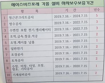 -하자보수기간이 항목별로 정해져 있어 기간 내에는 시공사에서 처리해줌 |